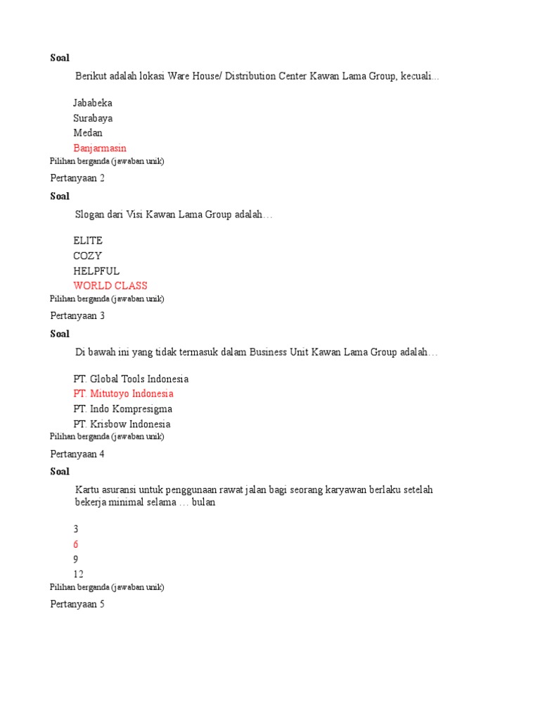 Kunci Jawaban Tes Online Kawan Lama Group : Kawan Lama Sejahtera Pt Posts Facebook : Kunci jawaban tes online kawan lama group.. Check spelling or type a new query. Maybe you would like to learn more about one of these? Kunci jawaban tes online kawan lama group. We did not find results for: