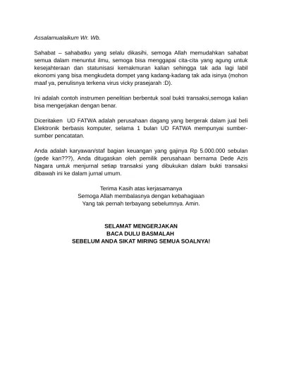 Periksa kelengkapan lembar soal dan lembar dokumen transaksi dan lembar kerja.
